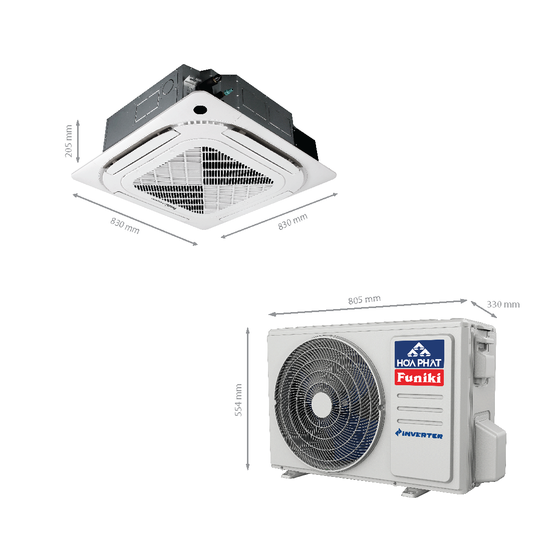 | Kích thước sản phẩm | Cụm trong nhà (R*S*C) | Dàn lạnh | mm | 830 x 830 x 205 |