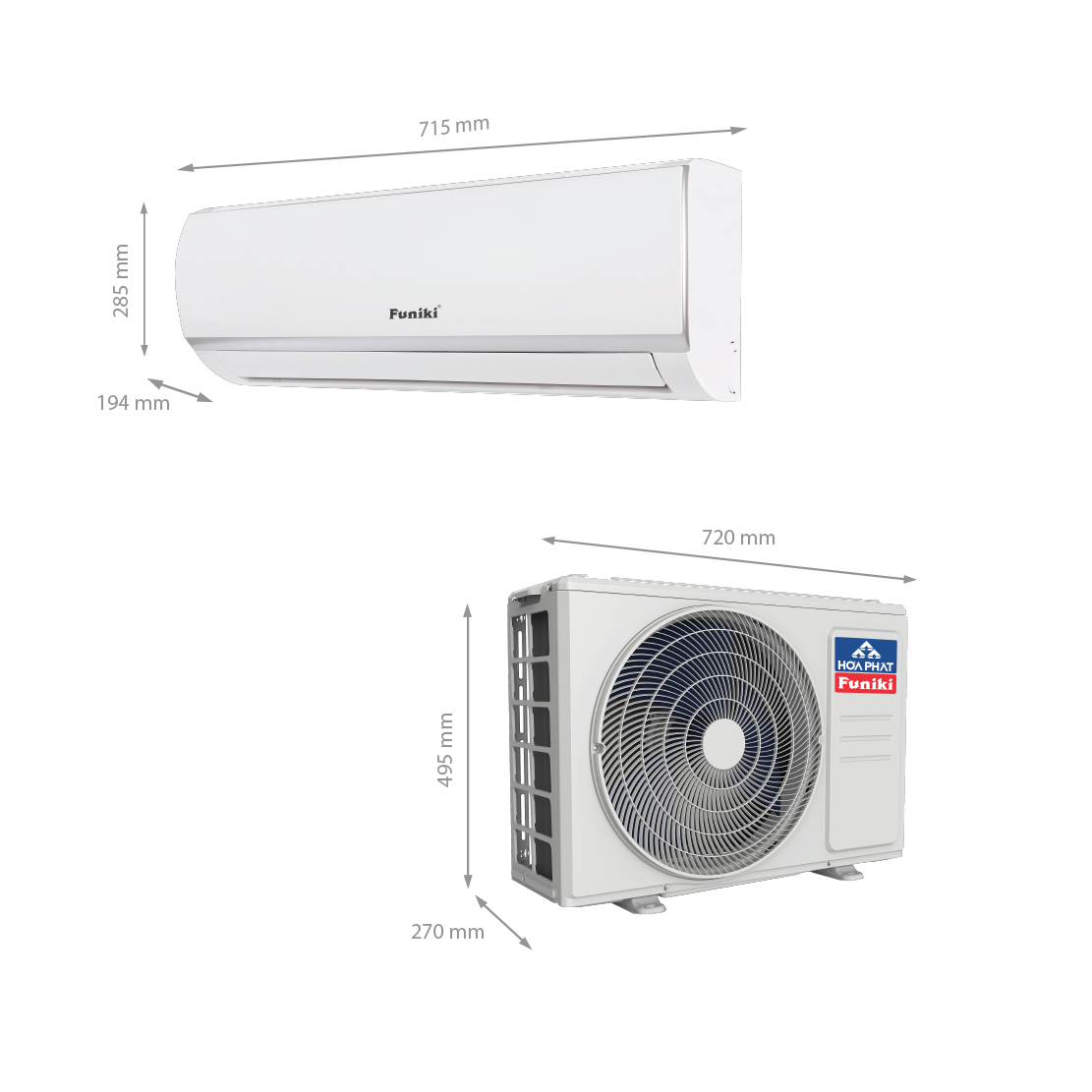 • Kích thước sản phẩm Cụm trong nhà mm 805x194x285