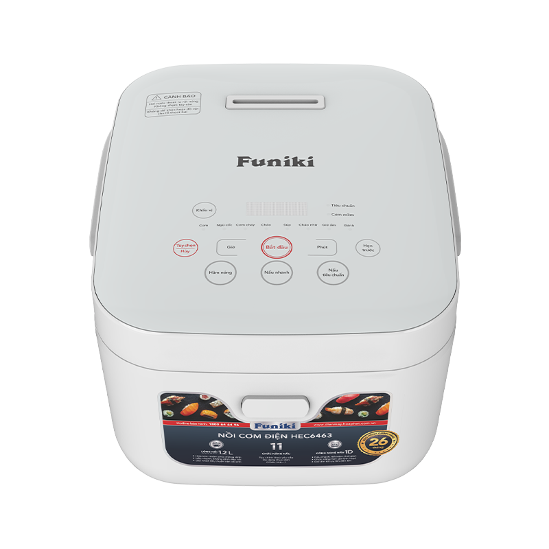 Nồi cơm điện tử Funiki HEC6463 (1.2L) là một thiết bị thông minh, mang lại chất lượng cơm hoàn hảo, sự tiện lợi với chức năng hẹn giờ, và kích thước gọn gàng, phù hợp với mọi không gian bếp hiện đại.