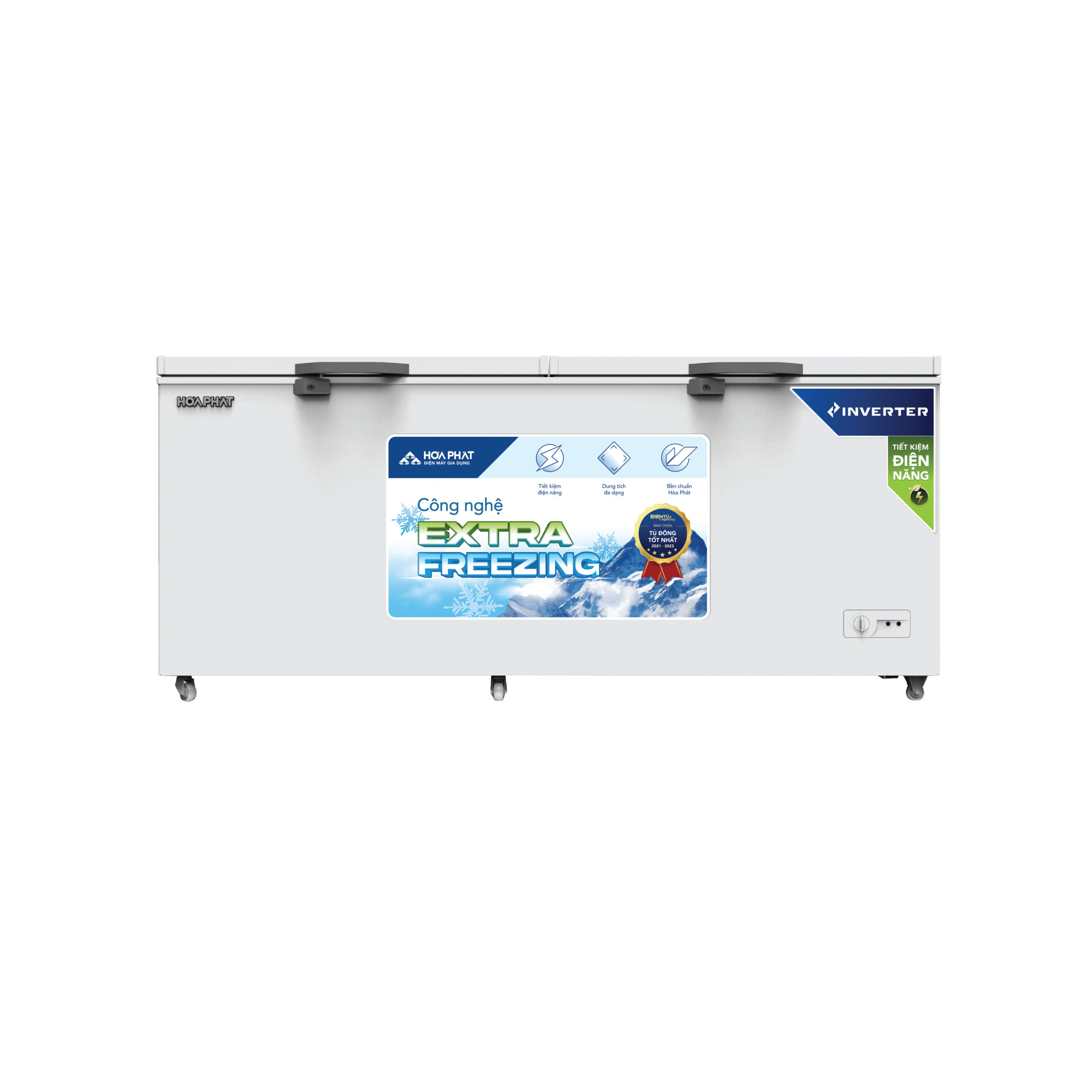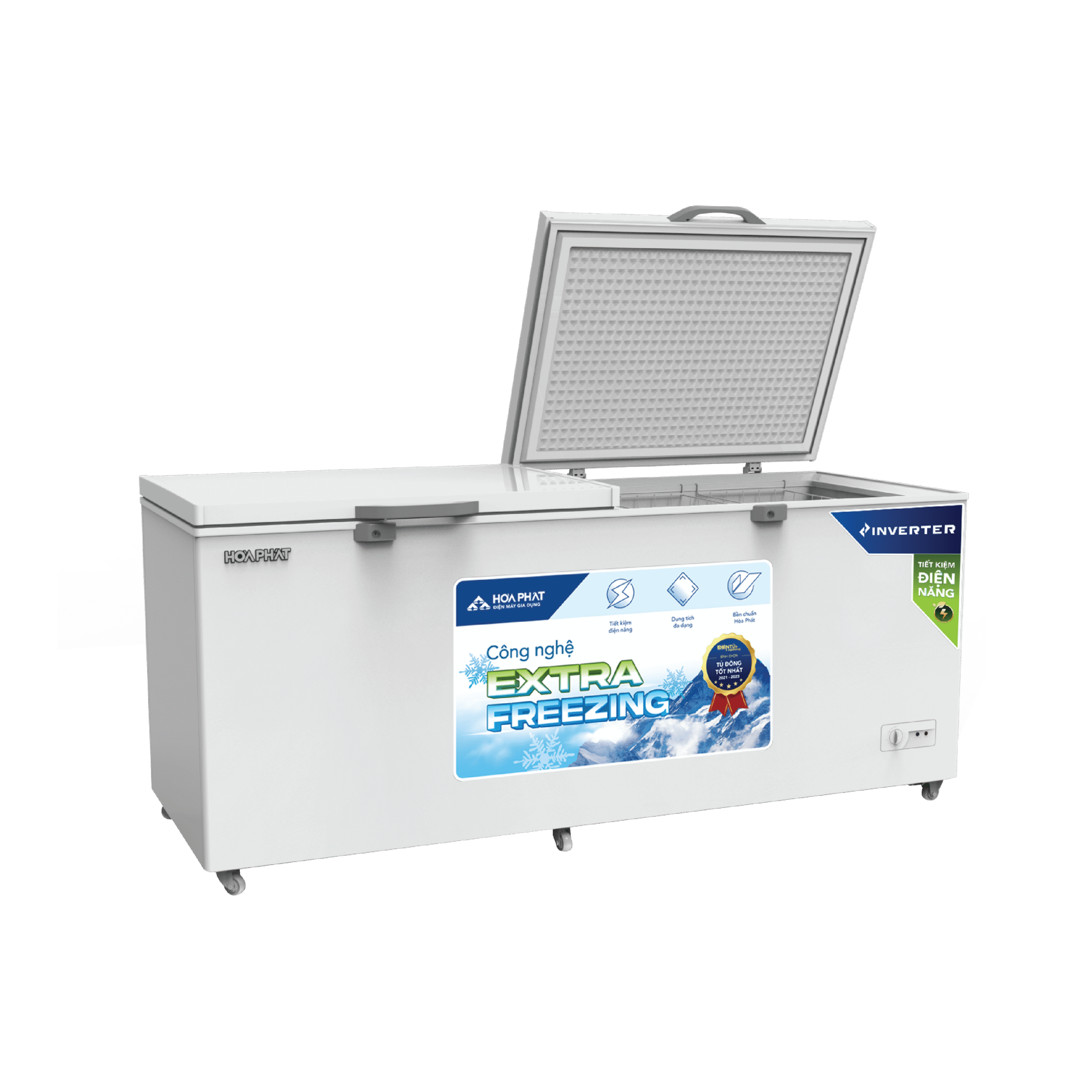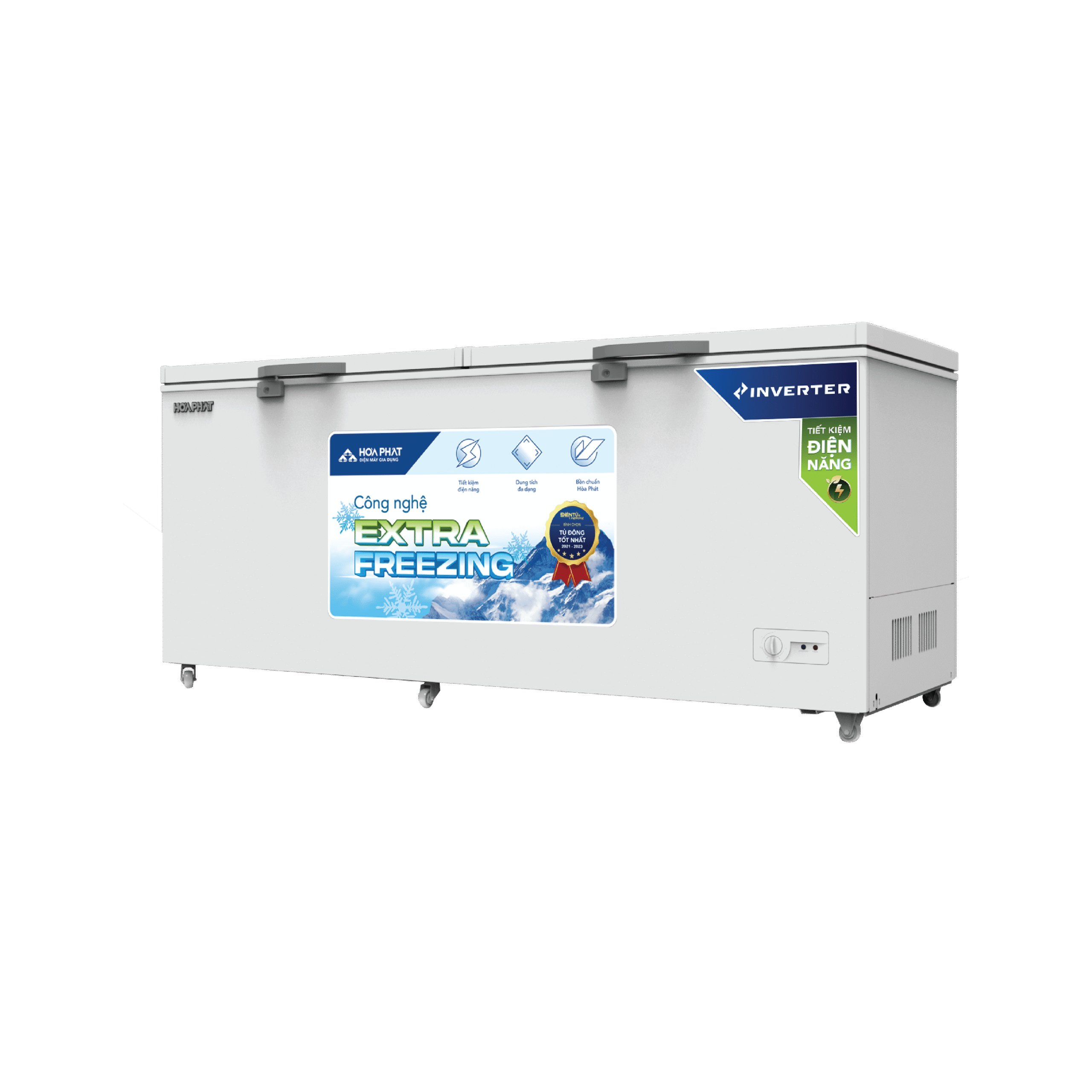 Tủ thuộc dòng Extra Freezing của Hòa Phát với khả năng đông sâu nhanh, lớp bảo ôn dày 67 mm và công nghệ làm lạnh 5D giúp hơi lạnh lan tỏa đồng đều, giữ thực phẩm tươi lâu và duy trì nhiệt độ chuẩn trong nhiều giờ.